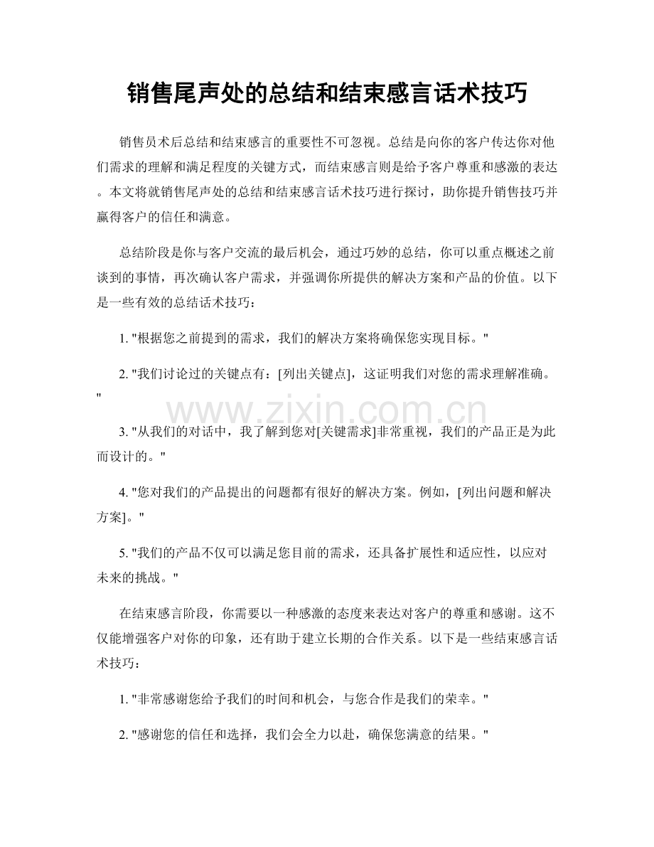 在总结和结束感言时,确保你的表达真诚、自信而专业。运用上述的话术技巧,不仅能为客户留下积极的印象,更能够提升销售效果并建立长期的合作关系。通过不断的实践和反思,你将成为一名出色的销售专家,赢得客户的信任和忠诚。