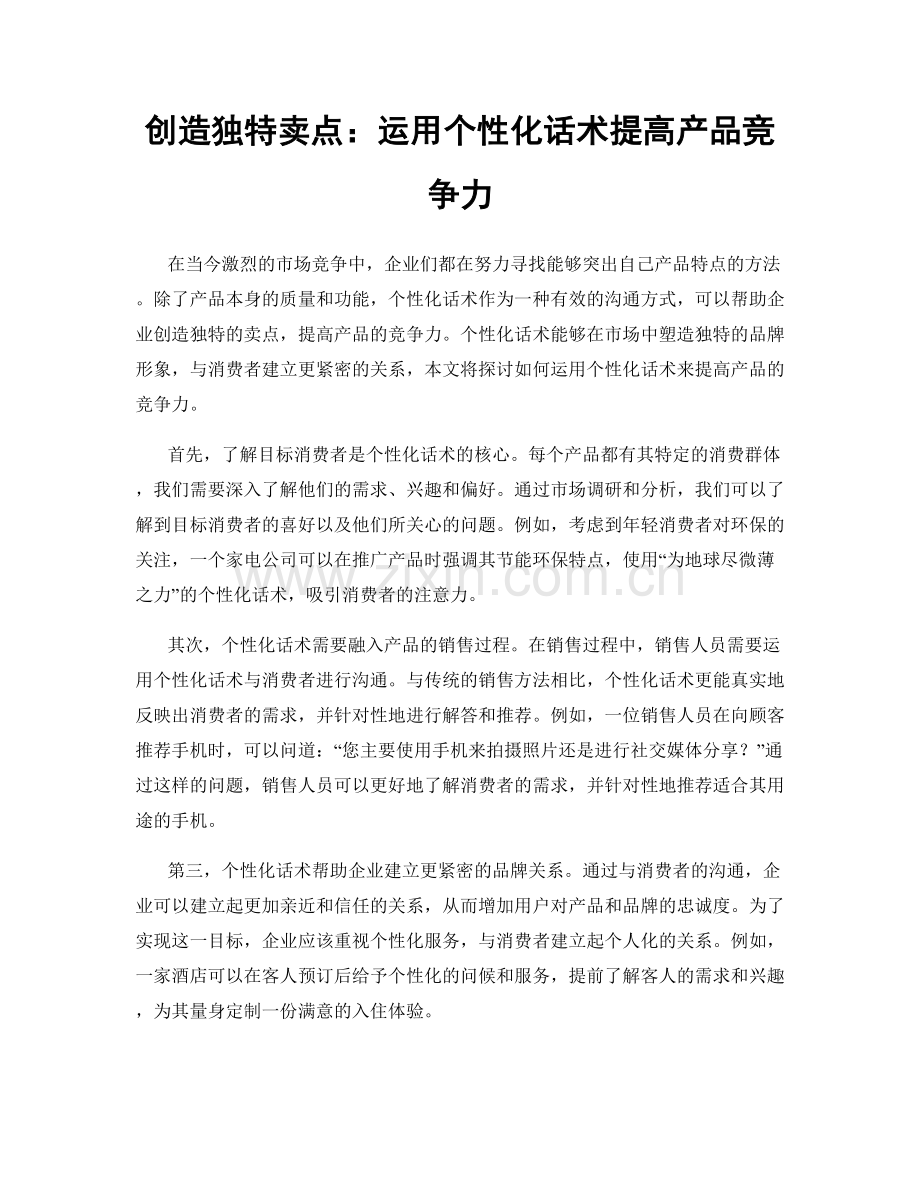 创造独特卖点:运用个性化话术提高产品竞争力