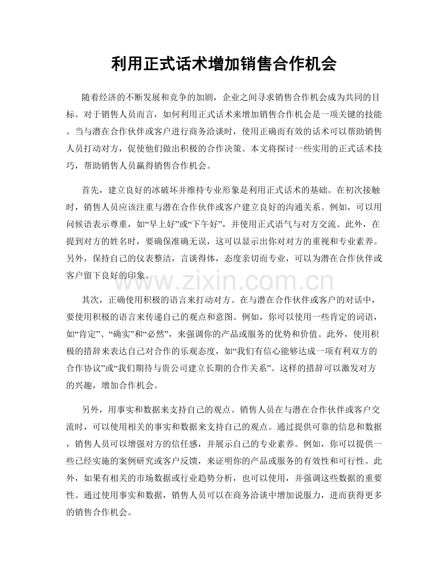 利用正式话术增加销售合作机会