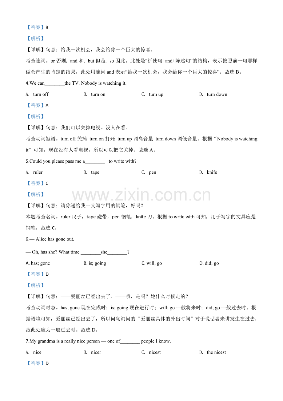 【详解】句意:——爱丽丝已经出去了。——哦,是吗?她什么时候走的?