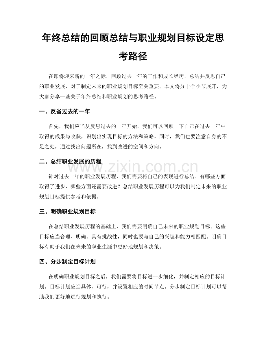 年终总结的回顾总结与职业规划目标设定思考路径