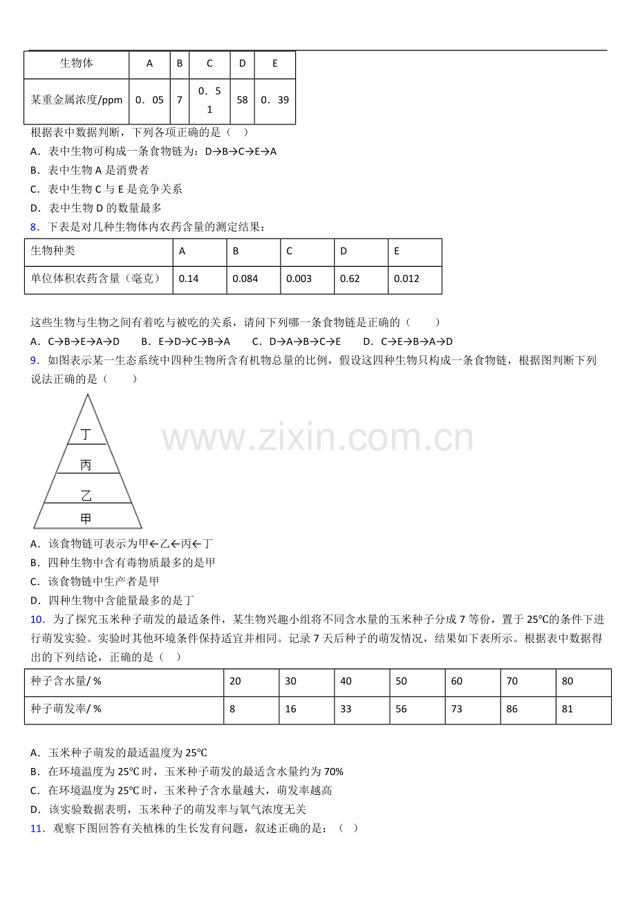 7.在某生态系统中,各种生物体内残留的某重金属含量如下表所示: