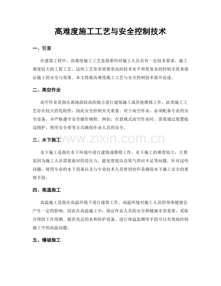 高难度施工工艺与安全控制技术是建筑工程中不可忽视的重要问题。在进行高难度施工工艺时,必须根据不同的情况制定相应的安全控制措施,保障施工人员的安全和项目的顺利进行。通过合理利用专业设备、加强团队合作、培养专业人才等手段,可以提高高难度施工工艺的施工效率和安全性。