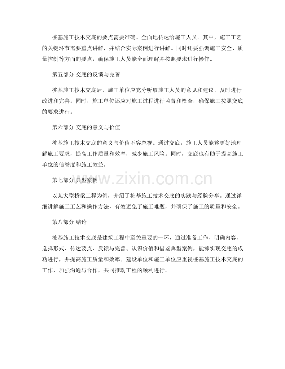 以某大型桥梁工程为例,介绍了桩基施工技术交底的实践与经验分享。通过详细讲解施工工艺和操作方法,有效避免了施工难题,并确保了施工的质量和安全。