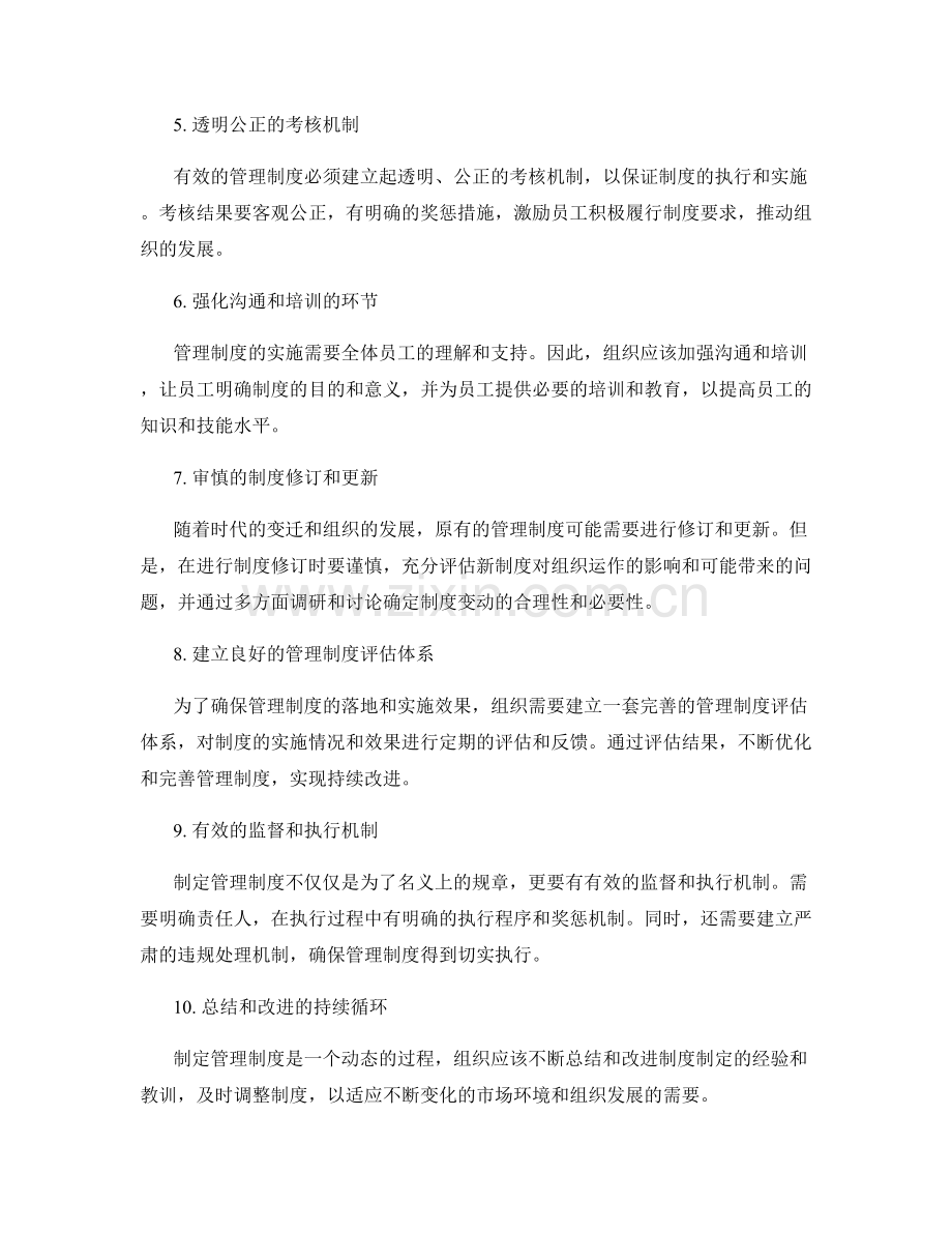 制定管理制度是一个动态的过程,组织应该不断总结和改进制度制定的经验和教训,及时调整制度,以适应不断变化的市场环境和组织发展的需要。