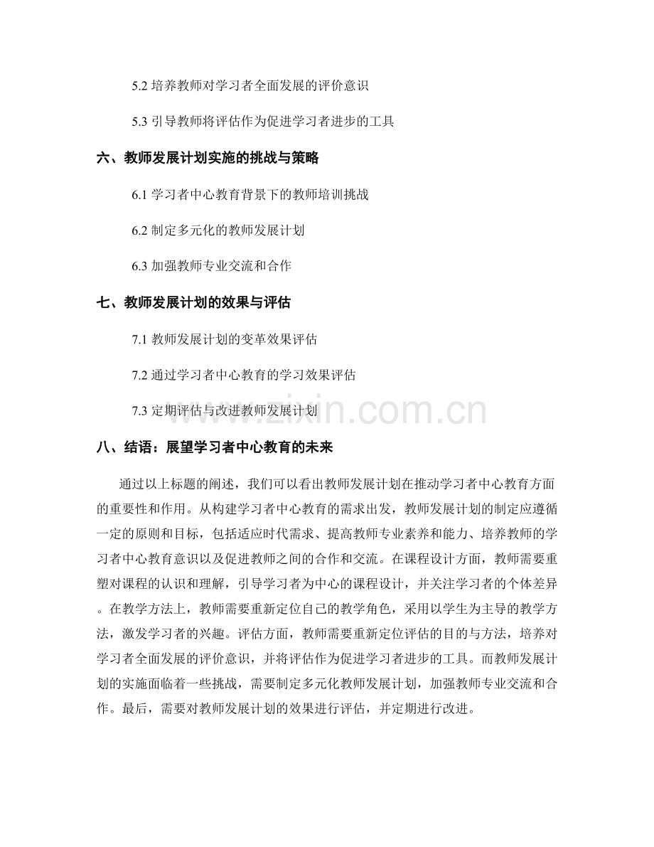 通过教师发展计划的推动,学习者中心教育将得以更好的实施,为学生的全面发展提供更加有效的支持和指导。