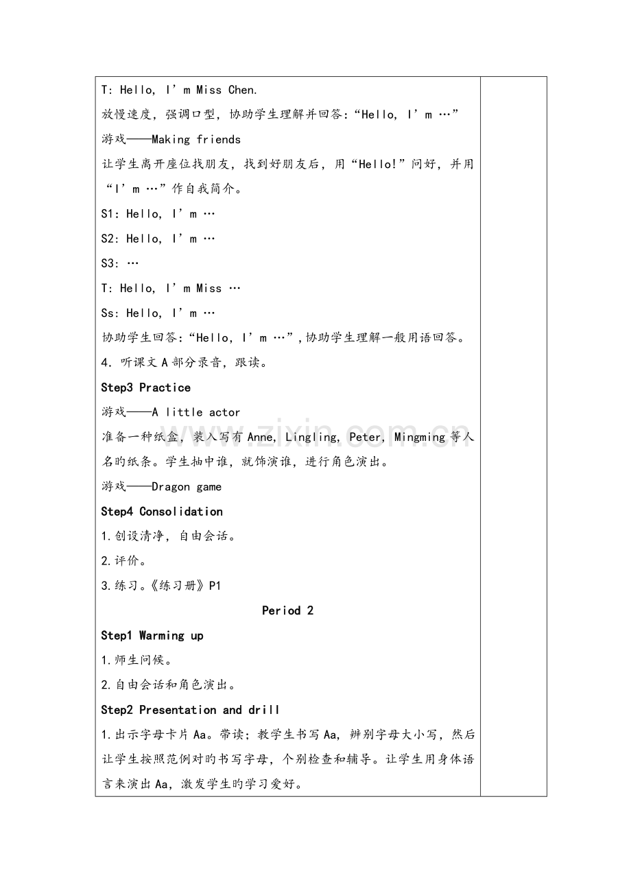 让学生离开座位找朋友,找到好朋友后,用“Hello!”问好,并用“I’m …”作自我简介。