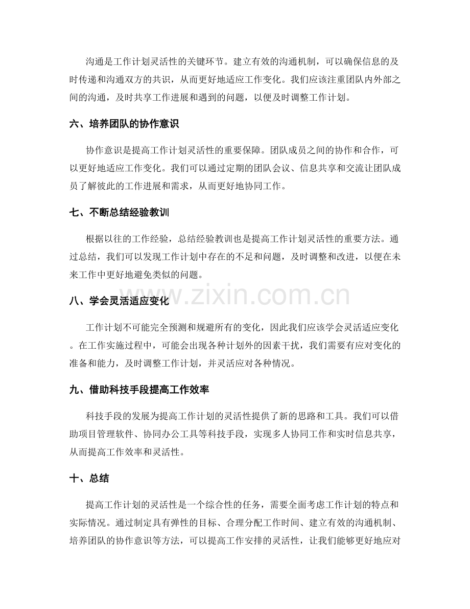 提高工作计划的灵活性是一个综合性的任务,需要全面考虑工作计划的特点和实际情况。通过制定具有弹性的目标、合理分配工作时间、建立有效的沟通机制、培养团队的协作意识等方法,可以提高工作安排的灵活性,让我们能够更好地应对各种变化,提高工作效果和质量。努力提高工作计划的灵活性,将帮助我们更好地适应快速变化的工作环境,取得更好的工作成果。