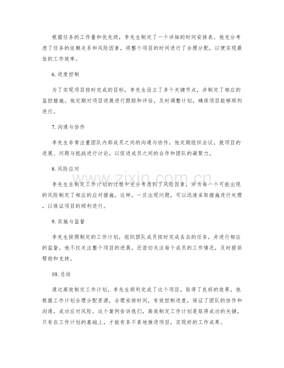 通过高效制定工作计划,李先生顺利完成了这个项目,取得了良好的效果。他根据工作计划合理分配资源,合理安排时间,有效控制进度,保证了团队的协作和沟通,成功应对风险。这个案例告诉我们,高效制定工作计划是取得成功的关键,只有在工作计划的基础上,才能有条不紊地推进项目,实现好的工作成果。