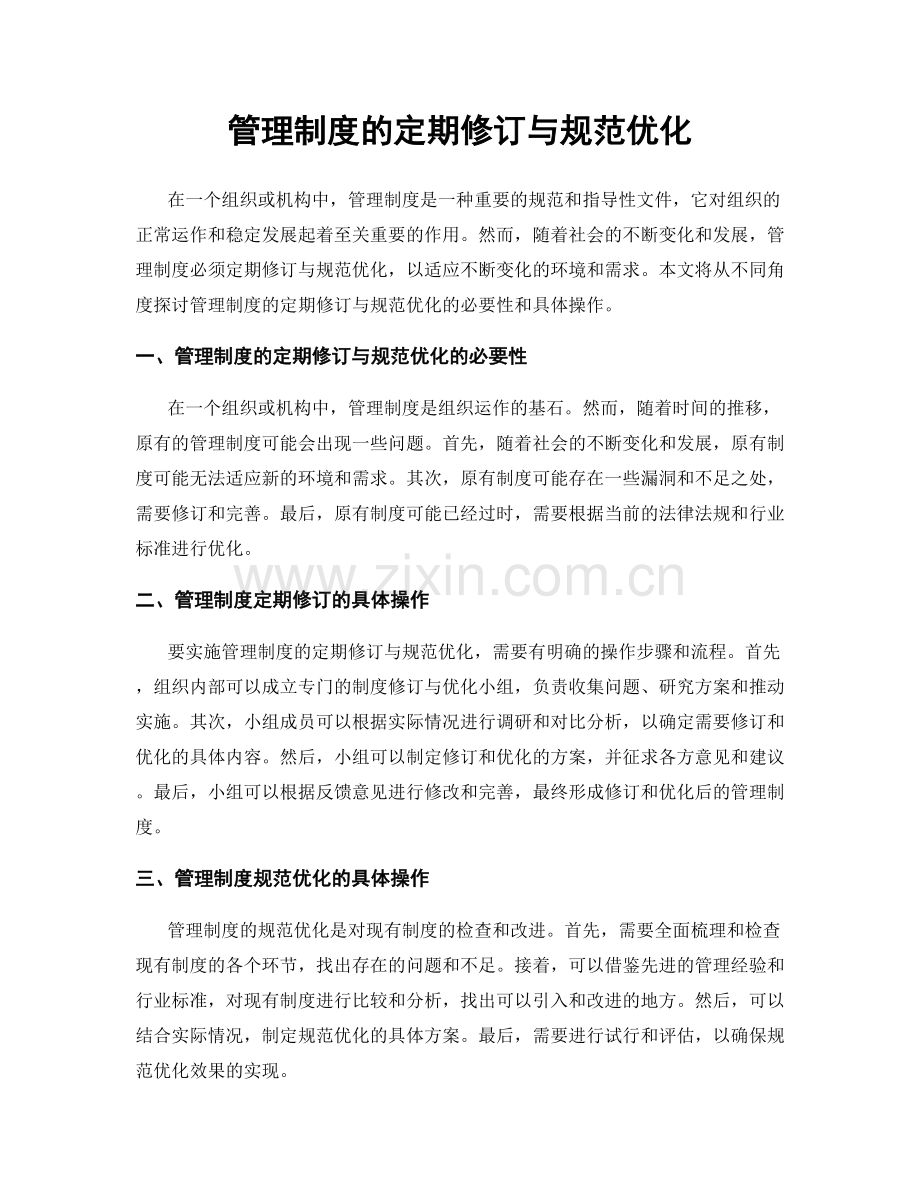 在一个组织或机构中,管理制度是一种重要的规范和指导性文件,它对组织的正常运作和稳定发展起着至关重要的作用。然而,随着社会的不断变化和发展,管理制度必须定期修订与规范优化,以适应不断变化的环境和需求。本文将从不同角度探讨管理制度的定期修订与规范优化的必要性和具体操作。