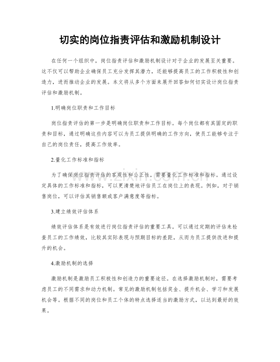 在任何一个组织中,岗位指责评估和激励机制设计对于企业的发展至关重要。这不仅可以帮助企业确保员工充分发挥其潜力,还能够提高员工的工作积极性和创造力,进而推动企业的发展。本文将从多个方面来展开回答如何切实设计岗位指责评估和激励机制。