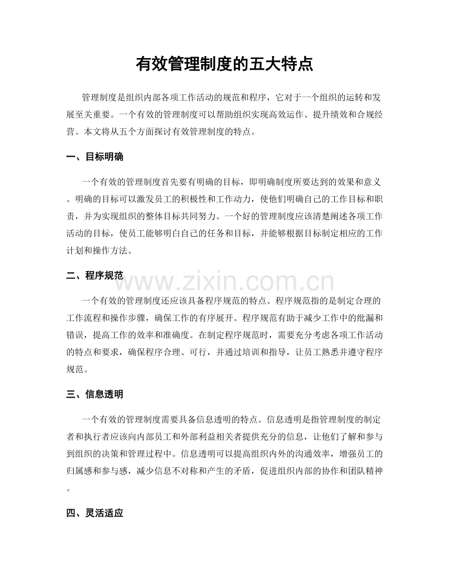 有效管理制度的五大特点
