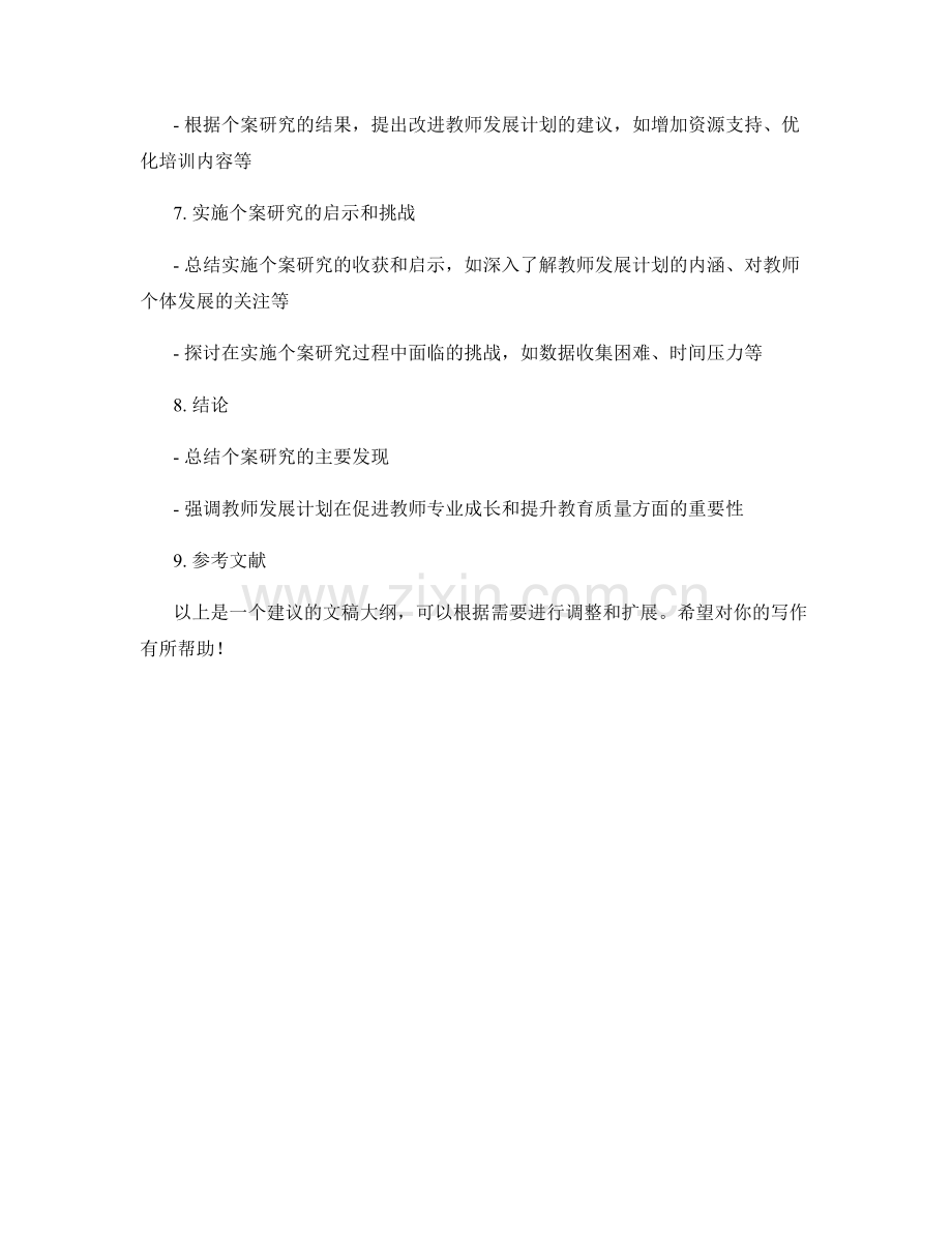 - 总结实施个案研究的收获和启示,如深入了解教师发展计划的内涵、对教师个体发展的关注等