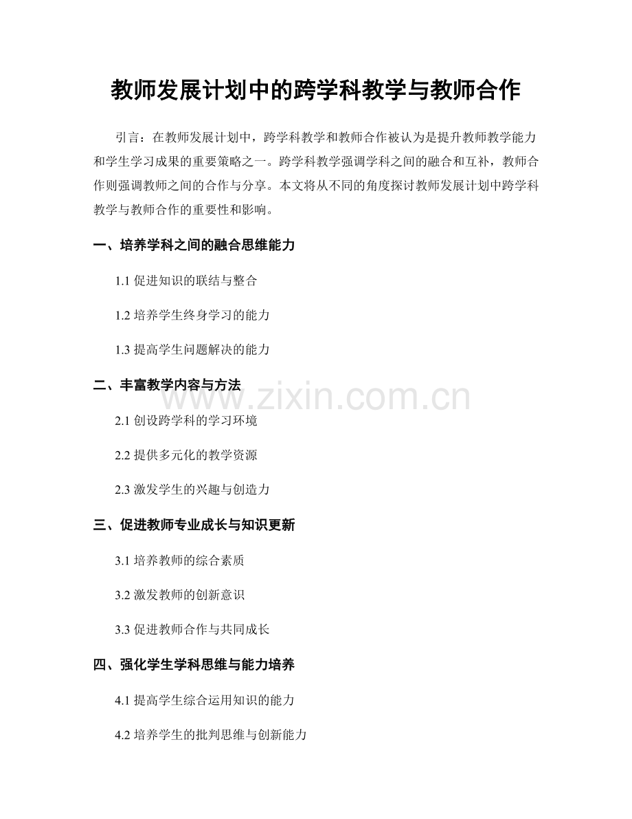 引言:在教师发展计划中,跨学科教学和教师合作被认为是提升教师教学能力和学生学习成果的重要策略之一。跨学科教学强调学科之间的融合和互补,教师合作则强调教师之间的合作与分享。本文将从不同的角度探讨教师发展计划中跨学科教学与教师合作的重要性和影响。