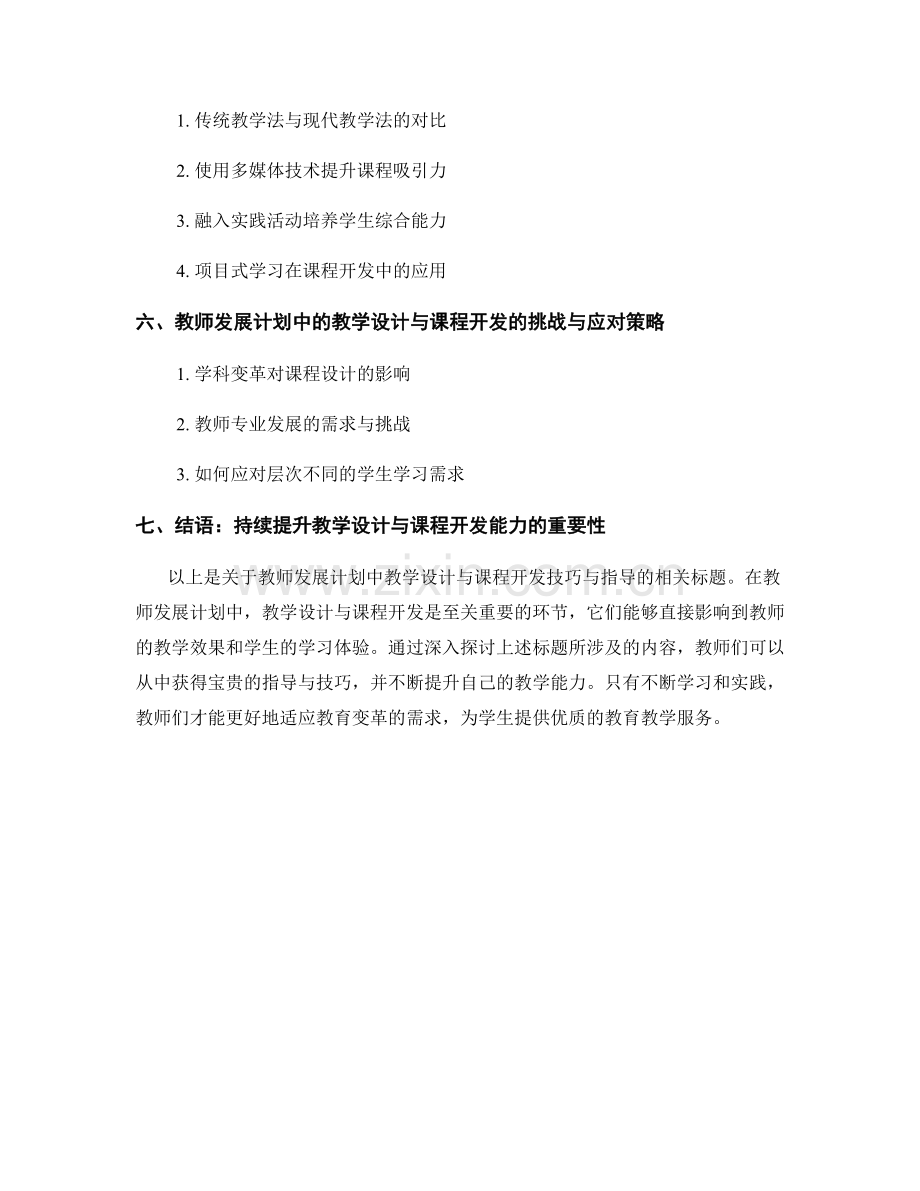 以上是关于教师发展计划中教学设计与课程开发技巧与指导的相关标题。在教师发展计划中,教学设计与课程开发是至关重要的环节,它们能够直接影响到教师的教学效果和学生的学习体验。通过深入探讨上述标题所涉及的内容,教师们可以从中获得宝贵的指导与技巧,并不断提升自己的教学能力。只有不断学习和实践,教师们才能更好地适应教育变革的需求,为学生提供优质的教育教学服务。