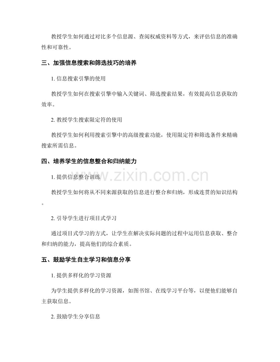 导语:信息获取能力是学生在现代社会中至关重要的一项能力,教师在教学中如何提高学生的信息获取能力成为一个重要问题。本文将从几个方面介绍相关策略。