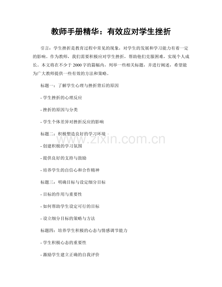 结语:学生挫折是不可避免的,但作为教师我们可以通过合适的方法和策略来有效应对。了解学生心理与挫折背后的原因、创建积极的学习环境、明确目标与设定细分目标、培养学生积极的心态与情感调节能力、提供适当的支持与帮助、关注学生个体差异与需求、鼓励反思和成长以及建立合作与互助的学习氛围,这些都是教师们应该掌握的技能和策略。通过教师手册中的精华内容,我们将能更好地应对学生挫折,帮助他们克服困难,实现个人成长。