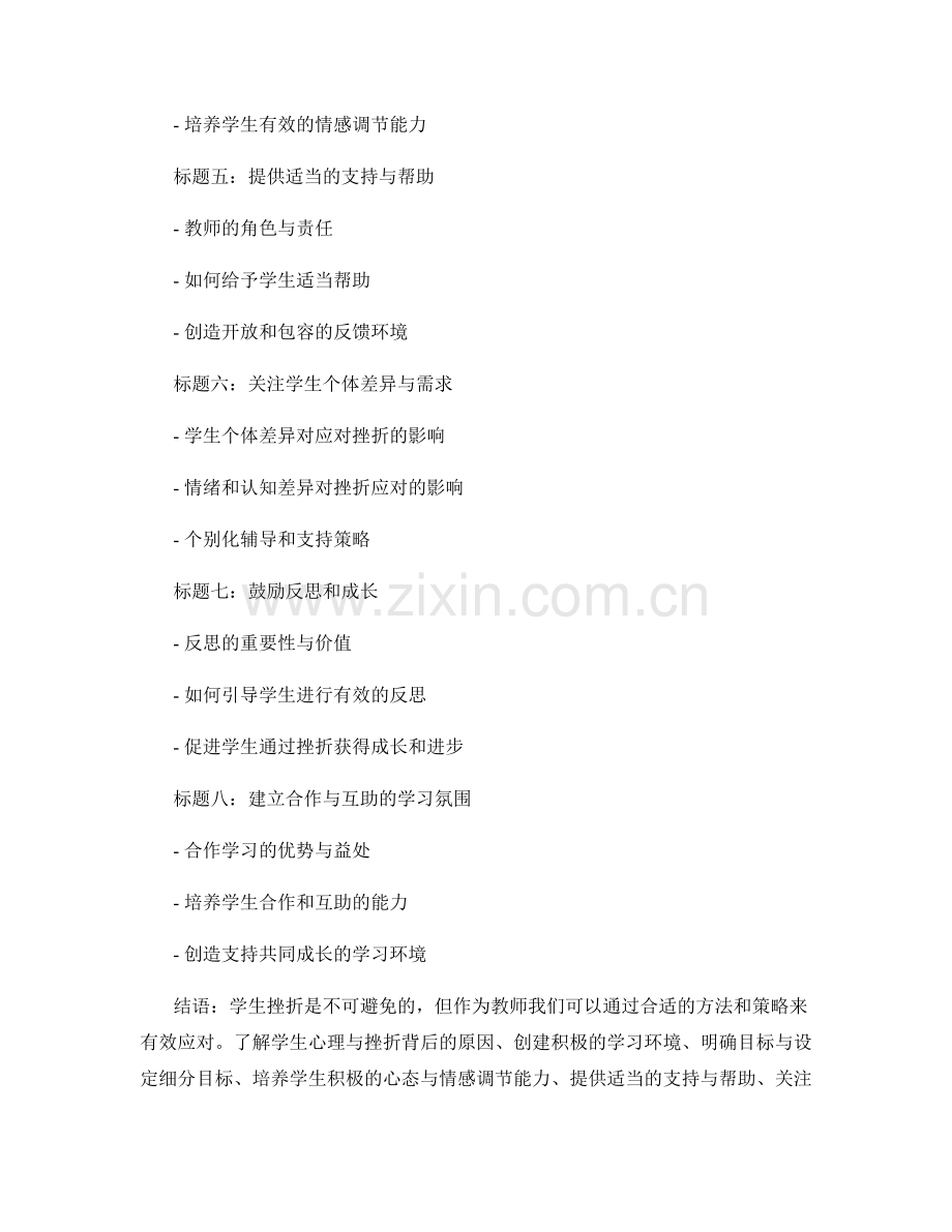 引言:学生挫折是教育过程中常见的现象,对学生的发展和学习能力有着一定的影响。作为教师,我们需要积极应对学生挫折,帮助他们克服困难,实现个人成长。本文将在不少于2000字的篇幅内,列举一些相关标题,并进行阐述,希望能为广大教师提供一些有效的方法和策略。