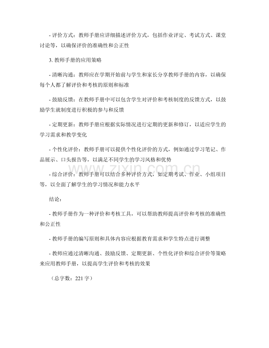 - 明确评价和考核目标:教师手册应明确表明评价和考核的目的,例如促进学生学习动力和提高学习效果等