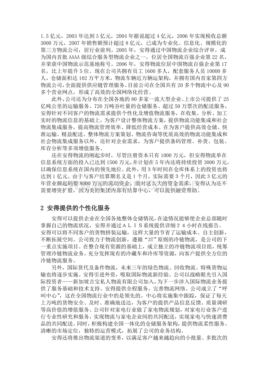 2 安得提供的个性化服务