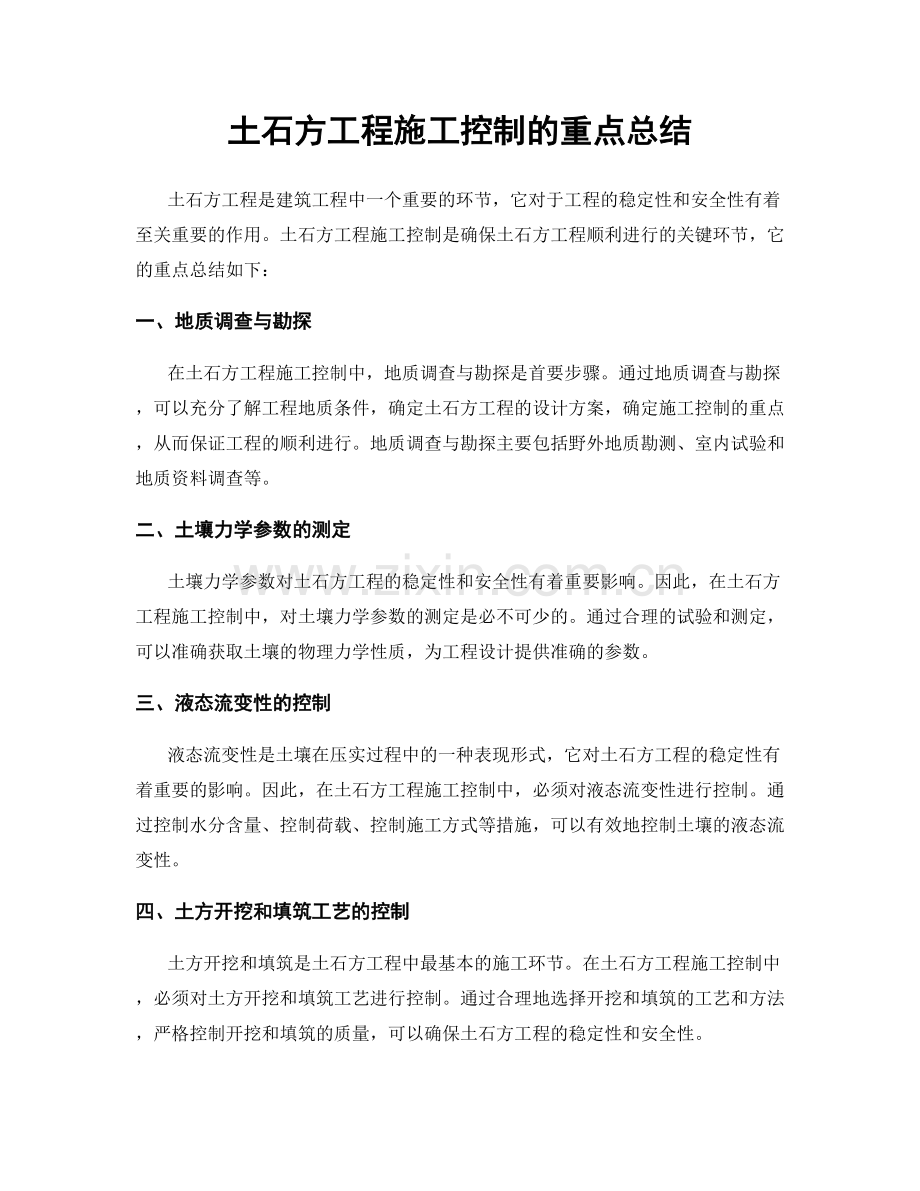 土石方工程是建筑工程中一个重要的环节,它对于工程的稳定性和安全性有着至关重要的作用。土石方工程施工控制是确保土石方工程顺利进行的关键环节,它的重点总结如下: