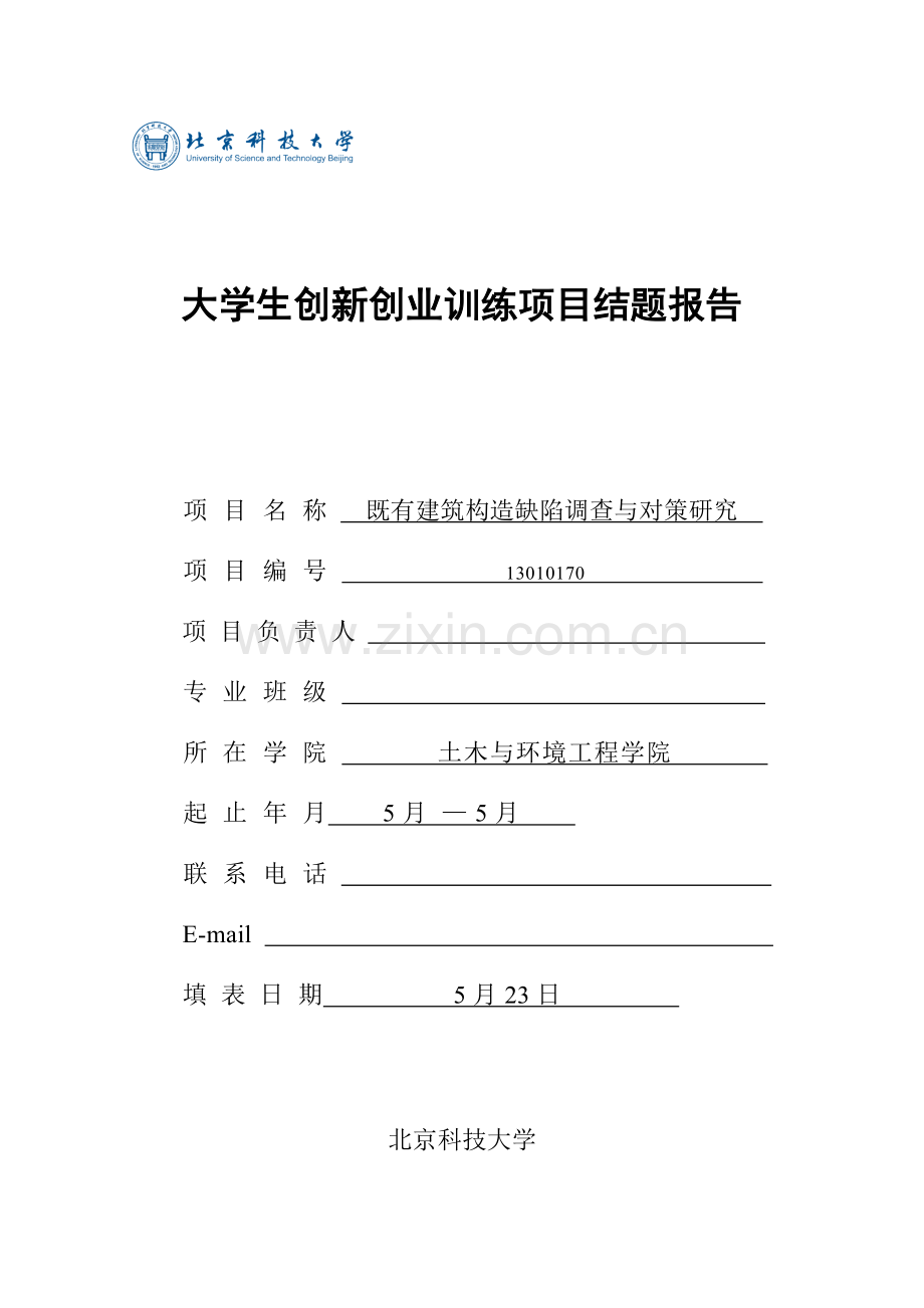 项 目 名 称 既有建筑构造缺陷调查与对策研究