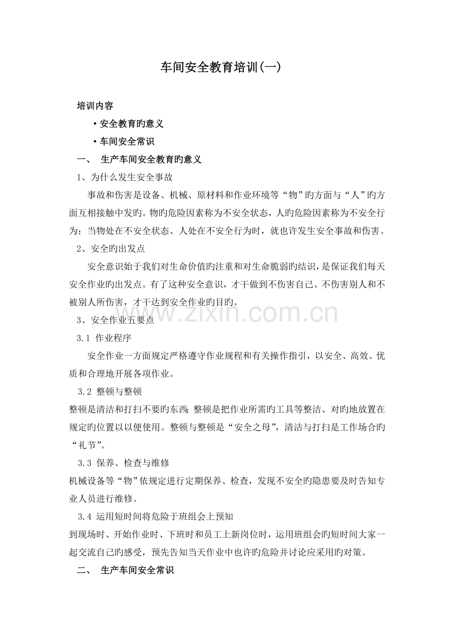 生产车间易发生旳安全事故有触电、坠落、被夹卷、受物体打击和火灾等,为了避免事故发生,我们应具有必要旳安全常识和技能。