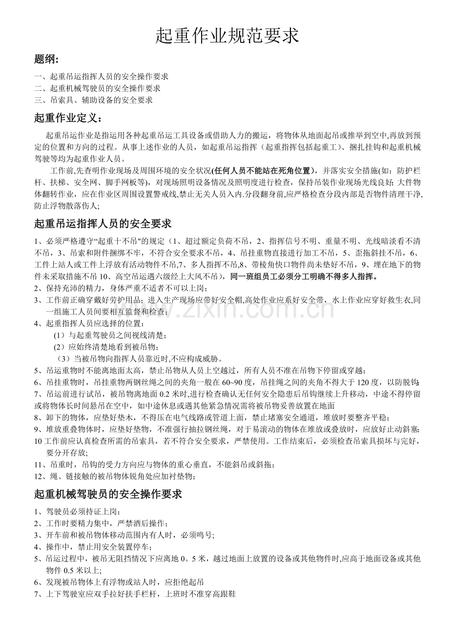 5、吊运过程中,被吊无阻挡情况下应离地0。5米,越过地面上放置的设备或其他物件时,应高于地面设备或其他物件0.5米以上;