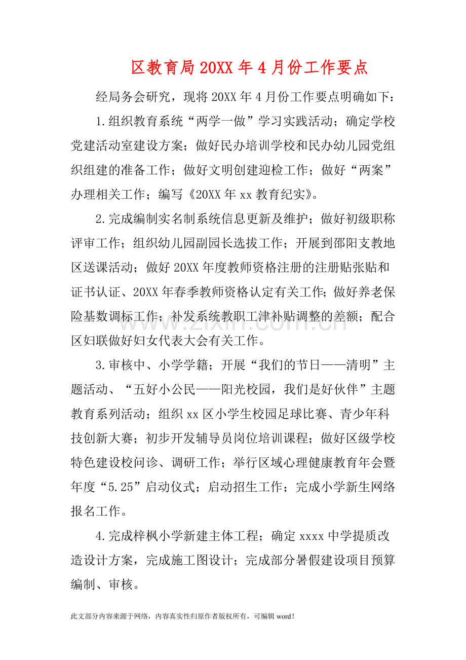 区教育局20XX年4月份工作要点