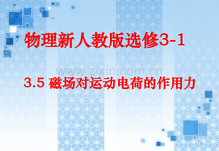 3.5 3.5 磁场对运动电荷的作用力磁场对运动电荷的作用力物理新人教版选修物理新人教版选修3-13-1【思考思考】电视机显像管电视机显像管中的电子只是细细的一中的电子只是细细的一束,为什么能使整个屏束,为什么能使整个屏幕发光?幕发光?【思考思考】从宇宙深处射来的带电粒子为什么只在从宇宙深处射来的带电粒子为什么只在地球的两极引起极光?地球的两极引起极光?1 1、判断安培力的方向:、判断安培力的方向:II2 2、安培力大小的一般计算方法:安培力大小的一般计算方法:FF一、复习一、复习思考:思考:1 1、磁场对电流有力的作用,、磁场对电流有力的作用,2 2、电流是由电荷的定向形成的,、电流是由电荷的定向形成的,由由此我们是否可以设想这个力其实是作此我们是否可以设想这个力其实是作用在电荷上的?用在电荷上的?运动电荷在磁场中会受到作用力吗?运动电荷在磁场中会受到作用力吗?I推理与猜想推理与猜想洛伦兹(洛伦兹(1853185319281928)洛伦兹是荷兰物理洛伦兹是荷兰物理学家、数学家,学家、数学家,18531853年年7 7月月1818日生于阿纳姆。日生于阿纳姆。洛伦兹创立了经典电子洛伦兹创立了经典电子论,提出了洛伦兹变换论,提出了洛伦兹变换公式,公式,19021902年与其学生年与其学生塞曼共同获得诺贝尔物塞曼共同获得诺贝尔物理学奖。为纪念洛伦兹理学奖。为纪念洛伦兹的卓著功勋,荷兰政府的卓著功勋,荷兰政府决定从决定从19451945年起,把他年起,把他的生日定为的生日定为“洛伦兹节洛伦兹节”。演示:阴极射线在磁场中的偏转演示:阴极射线在磁场中的偏转1 1、没有磁场时,接通高压电源可以观察到什么现象。、没有磁场时,接通高压电源可以观察到什么现象。2 2、光束实质上是什么?、光束实质上是什么?3 3、若在电子束的路径上加磁场,可以观察到什么现象?、若在电子束的路径上加磁场,可以观察到什么现象?4 4、改变磁场的方向,通过观查从而判断运动的电子在各个方、改变磁场的方向,通过观查从而判断运动的电子在各个方向磁场中的受力方向。向磁场中的受力方向。【实验现象实验现象】在没有外磁场时,电子束沿直线运动,将在没有外磁场时,电子束沿直线运动,将磁铁靠近阴极射线管,发现电子束运动轨磁铁靠近阴极射线管,发现电子束运动轨迹发生了弯曲。迹发生了弯曲。【实验结论实验结论】磁场对运动电荷有力的作用。磁场对运动电荷有力的作用。磁场对运动电荷的作用力叫做磁场对运动电荷的作用力叫做 洛伦兹力洛伦兹力二、探究洛伦兹力的方向:二、探究洛伦兹力的方向:安培力是磁场对电流的作用力安培力是磁场对电流的作用力电流是电荷的定向移动形成的电流是电荷的定向移动形成的 洛伦兹力是磁场对运动电荷的作用力洛伦兹力是磁场对运动电荷的作用力 磁场对电流的作用力实质是磁场对运磁场对电流的作用力实质是磁场对运 动电动电荷的作用力荷的作用力洛伦兹力的方向可以用洛伦兹力的方向可以用 左手定则判定左手定则判定 实验验证:实验验证:理论推导理论推导:猜想:猜想:猜想正确猜想正确洛伦兹力的方向洛伦兹力的方向洛伦兹力的方向洛伦兹力的方向-左手定则左手定则左手定则左手定则vv1 1 1 1、伸开左手,使大拇指和其余四、伸开左手,使大拇指和其余四、伸开左手,使大拇指和其余四、伸开左手,使大拇指和其余四指垂直且处于同一平面内,把手放指垂直且处于同一平面内,把手放指垂直且处于同一平面内,把手放指垂直且处于同一平面内,把手放入磁场中,让磁感线垂直穿过手心,入磁场中,让磁感线垂直穿过手心,入磁场中,让磁感线垂直穿过手心,入磁场中,让磁感线垂直穿过手心,若四指指向若四指指向若四指指向若四指指向正电荷正电荷正电荷正电荷运动的方向,那运动的方向,那运动的方向,那运动的方向,那么拇指所指的方向就使正电荷所受么拇指所指的方向就使正电荷所受么拇指所指的方向就使正电荷所受么拇指所指的方向就使正电荷所受洛伦兹力的方向。洛伦兹力的方向。洛伦兹力的方向。洛伦兹力的方向。2 2 2 2、若四指指向、若四指指向、若四指指向、若四指指向负电荷负电荷负电荷负电荷运动的运动的运动的运动的反方反方反方反方向向向向,那么拇指所指的方向就是负电,那么拇指所指的方向就是负电,那么拇指所指的方向就是负电,那么拇指所指的方向就是负电荷所受洛伦兹力的方向。荷所受洛伦兹力的方向。荷所受洛伦兹力的方向。荷所受洛伦兹力的方向。ffvvBvff垂直纸面向外垂直纸面向外 试判断下图中的带电粒子刚进入磁场时所受的洛伦兹力试判断下图中的带电粒子刚进入磁场时所受的洛伦兹力的方向的方向 1 1、可见:以相同速度进入同一磁场的正负电荷受到的洛、可见:以相同速度进入同一磁场的正负电荷受到的洛伦兹力方向相反。伦兹力方向相反。2 2、安培力方向由左手定则判断。我们知道安培力的方向既、安培力方向由左手定则判断。我们知道安培力的方向既垂直于磁场方向,又垂直于电流方向,同样也用左手定则垂直于磁场方向,又垂直于电流方向,同样也用左手定则判断洛伦兹力判断洛伦兹力f f的方向也既垂直于磁场的方向也既垂直于磁场B B的方向又垂直于电的方向又垂直于电荷运动速度荷运动速度v v的方向的方向练一练:练一练: