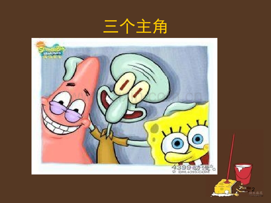 1三个主角2海绵宝宝黄色长方形海绵,其身体构成如同清洁用海绵。生日是1986年7月14日。拥有两只左手,各四根手指。以棕色短裤、白色衬衫和红色领带为主要服装。具有不死之身,即使身体如何被破坏皆可恢复原状。虽然有正常进食,但纯滤食海水也能继续存活。3派大星粉红色的海星。智商极低,头脑与身体仅使用插头连结。居住在一块大型圆形石头底下。内部有时候是凹洞并能放置家具(几乎都是由沙子组成),有时候则是平面的。懒惰并相当孩子气,时常在无意间呆滞的流口水,且讨厌洗澡、也不爱洗手、偏爱睡觉。跟海绵宝宝的交情最好;并时常鼓励海绵宝宝做出一些危险行动,往往让彼此陷入困境。部分时机下会瞬间突显富具知识的一面,比如提出极具参考价值的建议或佳句。4章鱼哥大鼻子章鱼。容易愤怒且势利眼。相当自恋,自以为拥有艺术才能。目前是光头,但曾有过黄色长卷发,并希望头发再长回来。居住在一栋仿复活节岛人像的房屋。担任蟹堡王餐厅的柜台人员,但并不喜欢自己的工作,实而望能成为举世闻名的艺术家;喜欢吹奏竖笛及采用多种风格画自画像。讨厌海绵宝宝和派大星,尤其是海绵宝宝,且在他们面前往往冷淡以对,但偶尔会对海绵宝宝表达认同(通常是对章鱼哥自己有利)。5还有!还有!6建筑物们菠萝屋据说它可以由一粒种子迅速长大结果吐出来,家具顺带,水电全有,一应俱全。7这是一个神秘的地方。别看它这么简陋,地下却很大。什么什么都有,竟然全是沙做的。石头屋8章鱼堡(大图好难找)据说它是一个巨大的复活节石像人头。9蟹堡王!海绵宝宝的工作地,生产超好吃的蟹黄堡。10海之霸很霸气的名字,其中也居住着也个邪恶邪恶的野心家。虽然生意火爆过,但长时间依旧没人光顾。11里面住着一位伟大的发明家,因此它也是比基堡最先进的地方(看上去就很高级)。相当于美国的硅谷;日本的筑波;中国的中关村!中关村!树屋钓鱼岛是中国的!12圣诞节!13个人观点(如有雷同不胜荣幸)(如有雷同不胜荣幸)海绵宝宝是很快乐的,无论何时何地。即使在某些天哭过,怒过,恨过,骄过,但他最后总是笑着结束的。很多很多很多人认为它是幼稚(弱智)的,无趣的。我只能对此感到惋惜惋惜,他们不懂不懂。他对一切都是深深地热爱着,他的工作,他的宠物,他的朋友,他的所有。它能教会你很多东西,生活,友谊,金钱,爱情。教你如何生活,如何快乐的生活。你又是否学到很多呢?14最后15来一张1617