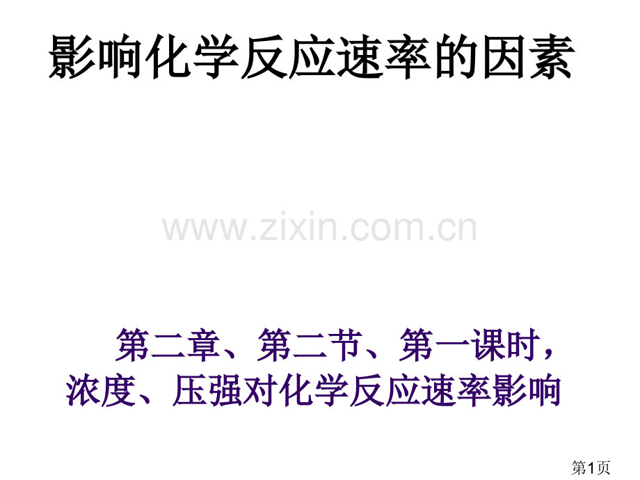影响化学反应速率的因素影响化学反应速率的因素 第二章、第二节、第一课时,第二章、第二节、第一课时,浓度、压强对化学反应速率影响浓度、压强对化学反应速率影响第1页化学反应碰撞理论:化学反应碰撞理论:、化学反应实质是:、化学反应实质是:旧化学键断裂,新化学键形成旧化学键断裂,新化学键形成、化学反应发生先决条件:、化学反应发生先决条件:反应物分子相互接触和碰撞反应物分子相互接触和碰撞 反应物分子之间碰撞次数很大,反应物分子之间碰撞次数很大,但但并不并不是每一次碰撞均可发生化学反应。是每一次碰撞均可发生化学反应。在化学上,把能够发生化学反应碰撞叫在化学上,把能够发生化学反应碰撞叫有有效碰撞;效碰撞;不能发生化学反应碰撞叫无效碰撞;不能发生化学反应碰撞叫无效碰撞;有效碰撞次数越多,反应速率越快。有效碰撞次数越多,反应速率越快。(3)、有效碰撞和无效碰撞)、有效碰撞和无效碰撞注意:注意:第2页力量不够力量不够取向不好取向不好好球!有效碰撞好球!有效碰撞反应物分子要含有什么条件才能发生有效碰撞?反应物分子要含有什么条件才能发生有效碰撞?、有、有足够能足够能量量使旧键断裂使旧键断裂、碰撞时要有、碰撞时要有合理取向合理取向第3页 在化学上,把在化学上,把能够发生有效碰撞分子能够发生有效碰撞分子叫活叫活 化分子,化分子,特点是:特点是:活化分子含有较高能量,活化分子含有较高能量,能量不足分子获能量不足分子获取能量后才能变成活化分子取能量后才能变成活化分子 在温度不变时,对某一个反应来说,在温度不变时,对某一个反应来说,活化分子在反应物中所占百分数是恒定,活化分子在反应物中所占百分数是恒定,且与温度呈正比。且与温度呈正比。(活化分子数(活化分子数反应物分子数)反应物分子数)100%、活化分子百分数活化分子百分数=?(4)、活化分子)、活化分子第4页Ec:活化分子所含有最低能量:活化分子所含有最低能量Ee:全部分子平均能量:全部分子平均能量Ea:活化能:活化能活化能:活化能:活化分子活化分子高出普通分子那高出普通分子那部分能量部分能量第5页能能量量E1E2H反应物反应物生成物生成物 活化能越小,普通分子就越容活化能越小,普通分子就越容易变成活化分子。易变成活化分子。反应过程反应过程第6页分子分子运动运动相互相互碰撞碰撞分子含有足分子含有足够能量够能量活化活化分子分子有有 合合 适适 取取 向向有效碰撞有效碰撞发生化学反应发生化学反应化学反应发生条件化学反应发生条件l化学反应速率与单位时间内分子间有效碰撞化学反应速率与单位时间内分子间有效碰撞次数(有效碰撞频率)相关。次数(有效碰撞频率)相关。第7页浓度对反应速率影响浓度对反应速率影响反应物浓度增大:反应物浓度增大:即即单位体积内反应物分单位体积内反应物分子总数数增大子总数数增大单位体积内活化分单位体积内活化分子数增加子数增加有效碰撞次有效碰撞次数增多数增多反应速率加紧反应速率加紧第8页1 1、浓度对化学反应速率影响。、浓度对化学反应速率影响。原因:原因:在其它条件不变时,对某一反在其它条件不变时,对某一反应来说,活化分子百分数是一定,即应来说,活化分子百分数是一定,即单位体单位体积积内活化分子数与反应物浓度成正比。所以内活化分子数与反应物浓度成正比。所以当反应物浓度增大时,当反应物浓度增大时,单位体积单位体积内分子数增内分子数增多,活化分子数也对应增多,反应速率也必多,活化分子数也对应增多,反应速率也必定增大。定增大。规律:规律:其它条件不变时,增大反应物其它条件不变时,增大反应物浓度,能够增大反应速率;减小反应物浓度,浓度,能够增大反应速率;减小反应物浓度,能够减小化学反应速率。能够减小化学反应速率。第9页注意:注意:a、此规律只适合用于气体或溶液反、此规律只适合用于气体或溶液反应,应,对于固体或纯液体反应物,普通情况对于固体或纯液体反应物,普通情况下其浓度是常数下其浓度是常数,所以改变它们量不会改,所以改变它们量不会改改变学反应速率。改变学反应速率。b、气体或溶液浓度改变与反应速率、气体或溶液浓度改变与反应速率关系并不是一概如此,若伴随浓度改变,物关系并不是一概如此,若伴随浓度改变,物质本质发生了改变,那么反应速率含义也不质本质发生了改变,那么反应速率含义也不一样了。一样了。如:浓盐酸和二氧化锰反应如:浓盐酸和二氧化锰反应第10页压强对反应速率影响压强对反应速率影响结论:增大压强,相当于增大反应物浓度,结论:增大压强,相当于增大反应物浓度,反应速率加紧。反应速率加紧。第11页2、压强对反应速率影响。、压强对反应速率影响。原因:原因:对气体来说,若其它条件不变,对气体来说,若其它条件不变,增大压强,就是增加增大压强,就是增加单位体积单位体积反应物物质量,反应物物质量,即增加反应物浓度,因而能够增大化学反应即增加反应物浓度,因而能够增大化学反应速率。速率。规律:规律:对于有气体参加反应,若其它条对于有气体参加反应,若其它条件不变,增大压强,反应速率加紧;减小压件不变,增大压强,反应速率加紧;减小压强,反强,反应速率减慢。应速率减慢。注意:注意:
