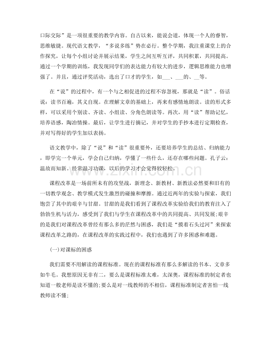 课程改革是一场前所未有的攻坚战,新理念、新教材、新教法必然要和旧有的一切教学观念、教学模式发生激烈的碰撞和摩擦。通过近两年的实验与探索,我们饱尝了其中的艰辛与甘甜。甘甜的是我们看到了课程改革实验给我们的教育注入了勃勃生机与活力,感受到了我们与学生在课程改革中的共同提高、共同发展;艰辛的是我们对课程改革曾经有那么多的茫然与困惑,我们是“摸着石头过河”来探索课程改革之路的,在课程改革的实践过程中,我们也遇到了许多困惑和难题。
