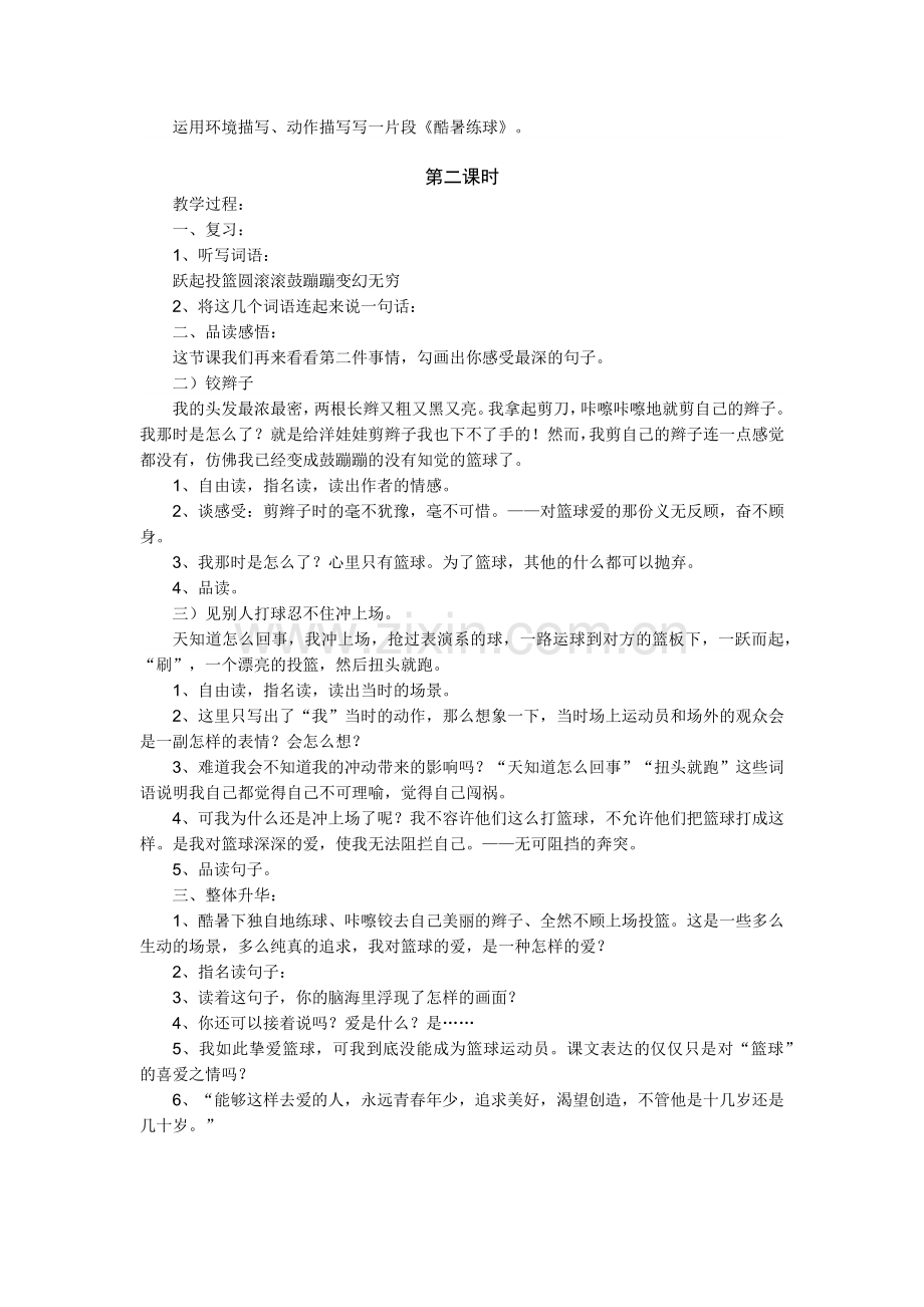 1、感情朗读,注意读出“跃起、投篮,跃起、投篮“那不知疲倦,朝气蓬勃的精神。