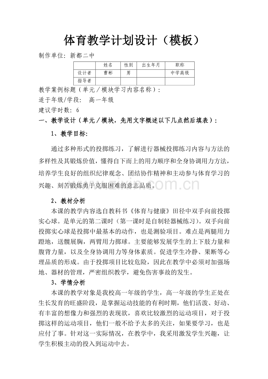 设置合适的体育学习目标,学会一种常见的轻器械(实心球)投掷方法。