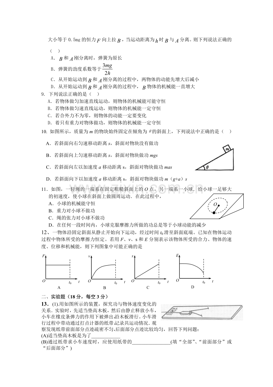 12、一物体沿固定斜面从静止开始向下运动,经过时间t0滑至斜面底端。已知在物体运动过程中物体所受的摩擦力恒定。若用F、v、s和E分别表示该物体所受的合力、物体的速度、位移和机械能,则下列图象中可能正确的是