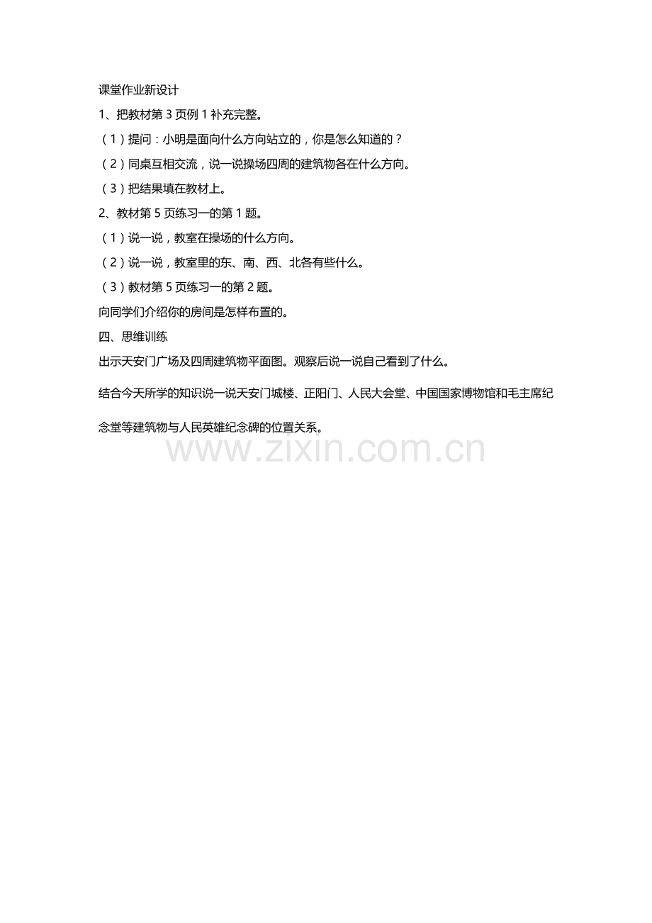 (2)同桌互相交流,说一说操场四周的建筑物各在什么方向。