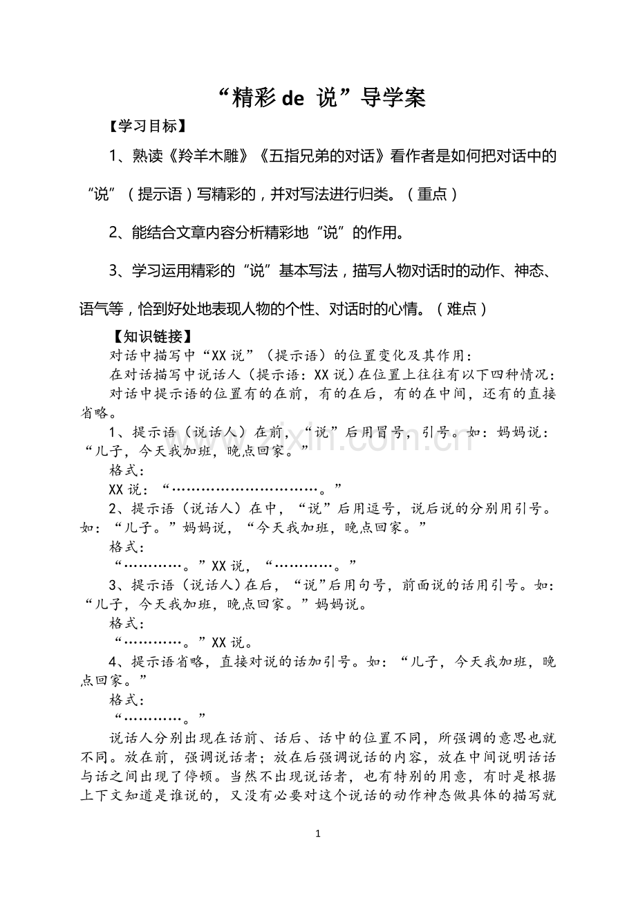 1、熟读《羚羊木雕》《五指兄弟的对话》看作者是如何把对话中的“说”(提示语)写精彩的,并对写法进行归类。(重点)