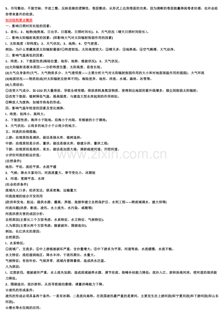 10)地理事物的分布特征和分布规律(主要从空间分布(是否均匀、空间变化规律)和时间分配(季节和年际变化的大小)两方面概括)