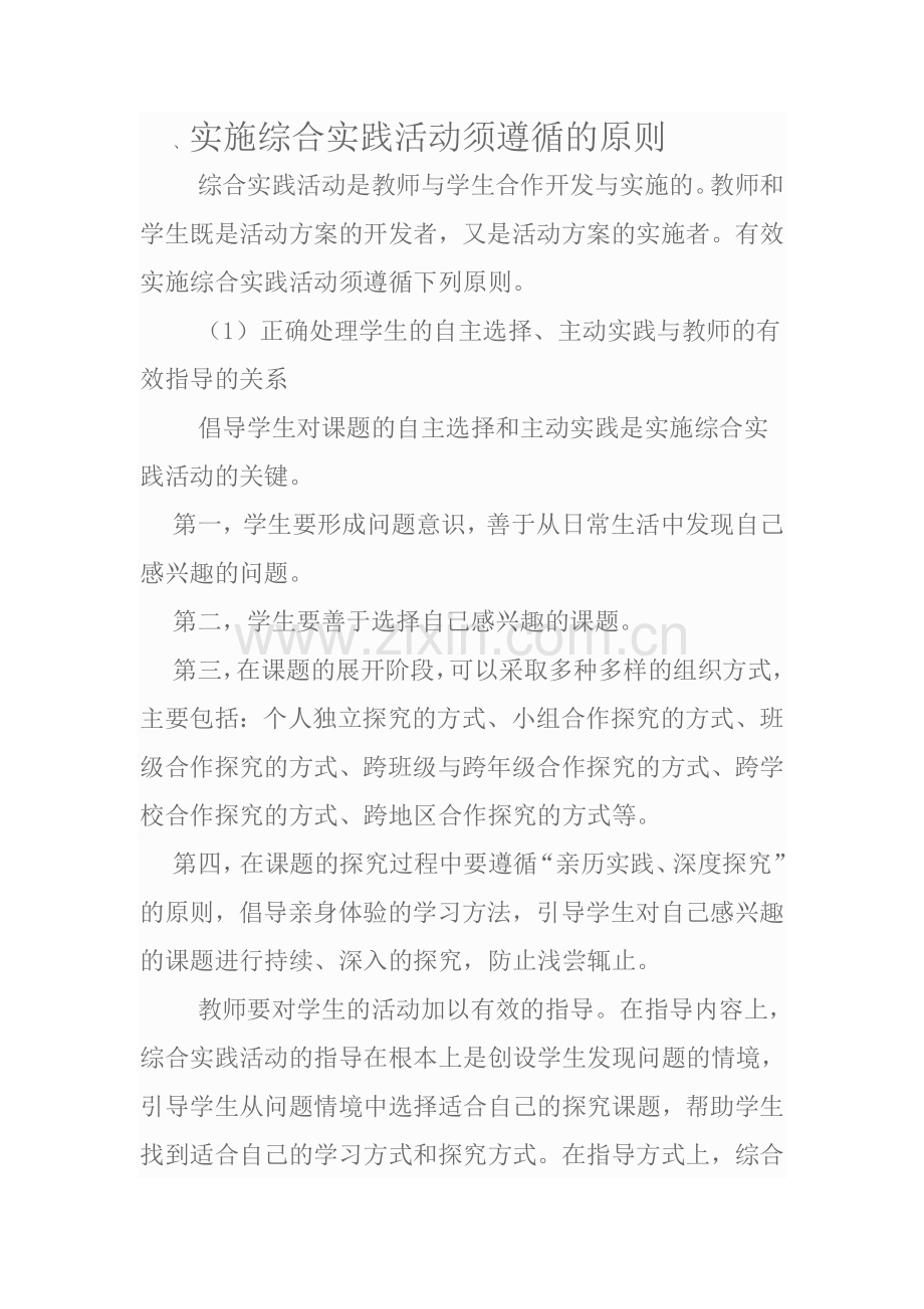 、实施综合实践活动须遵循的原则
