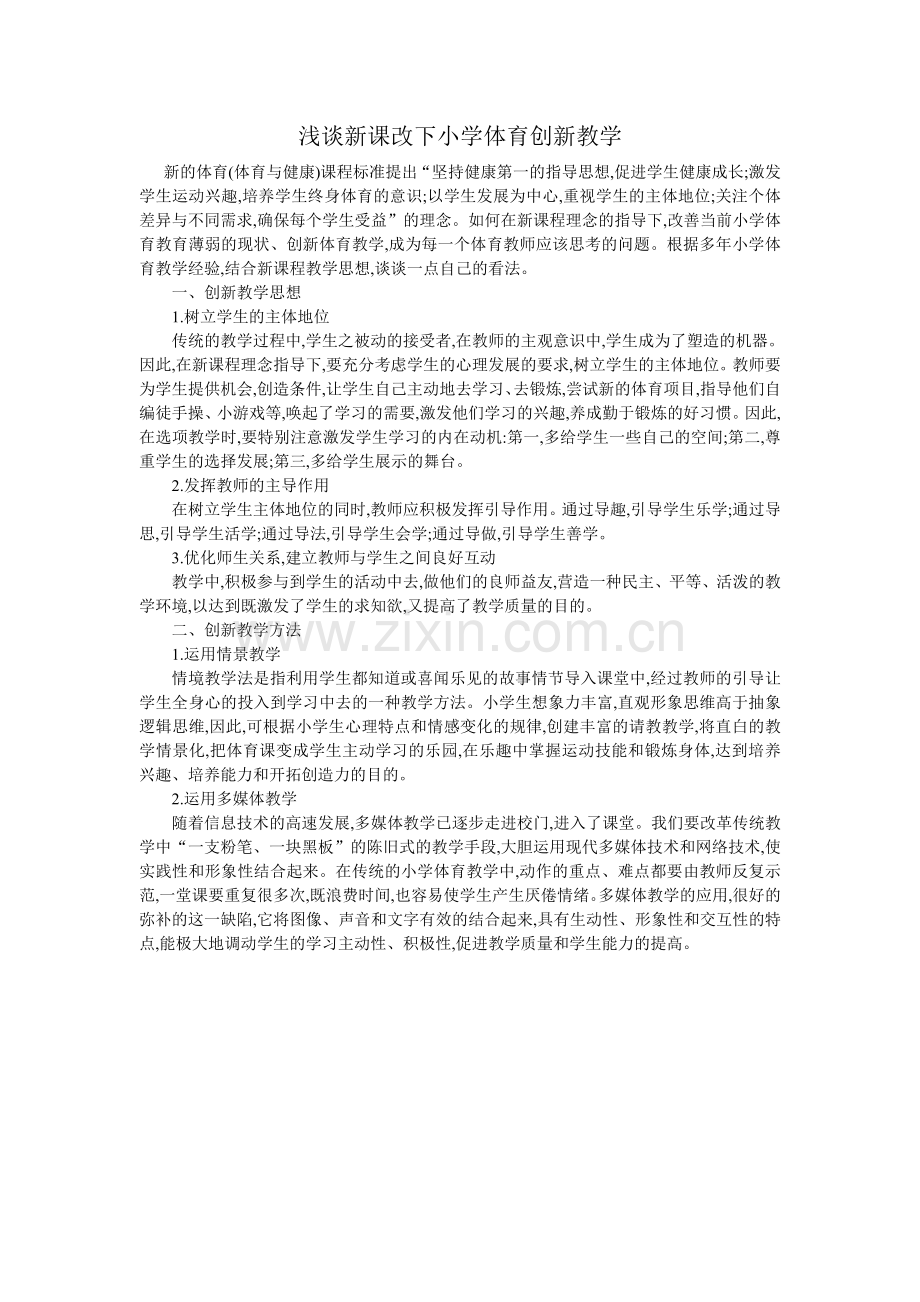 浅谈新课改下小学体育创新教学