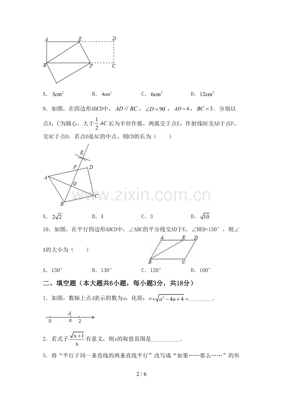 10.如图,在平行四边形ABCD中,∠ABC的平分线交AD于E,∠BED=150°,则∠A的大小为( )