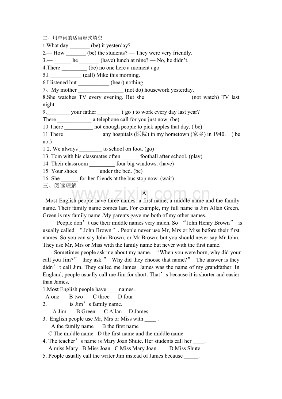 Most English people have three names: a first name, a middle name and the family name. Their family name comes last. For example, my full name is Jim Allan Green. Green is my family name .My parents gave me both of my other names.