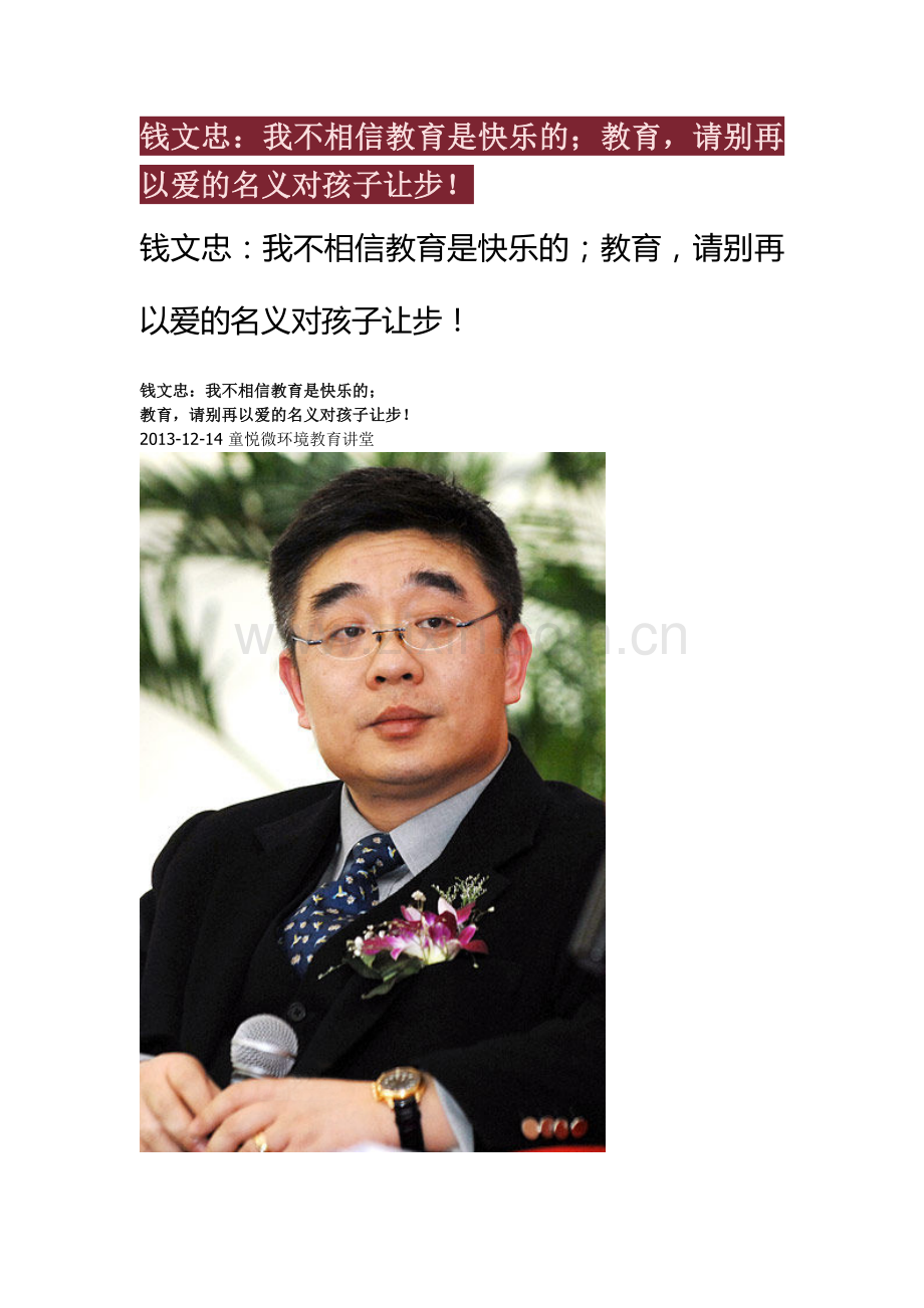 钱文忠:我不相信教育是快乐的;