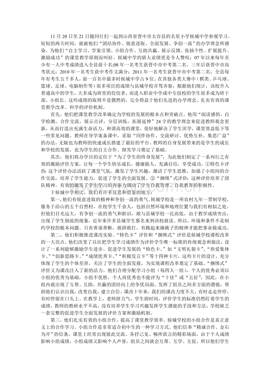 于候城中学相比,我们有许多反思和借鉴的地方: