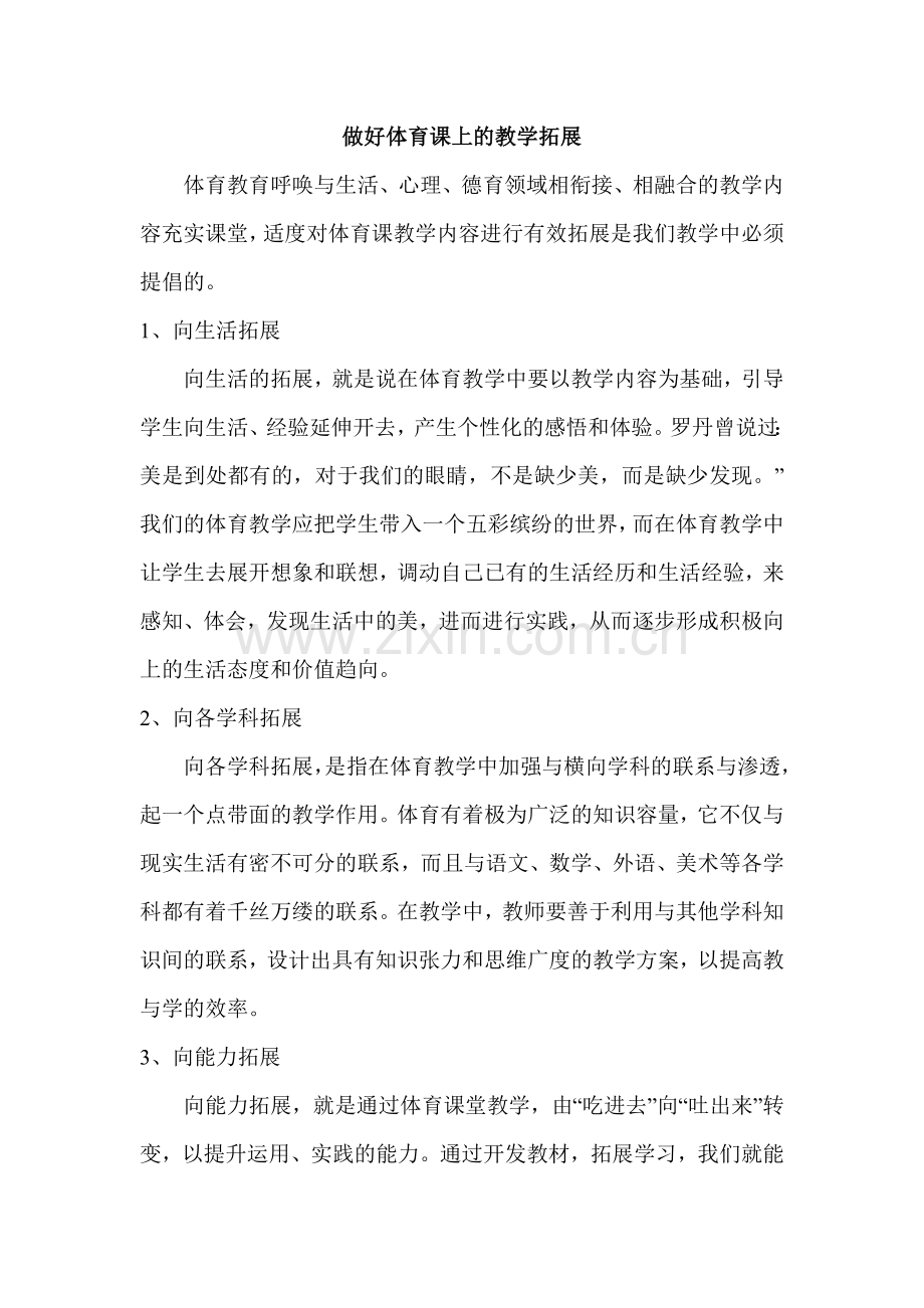 体育教育呼唤与生活、心理、德育领域相衔接、相融合的教学内容充实课堂,适度对体育课教学内容进行有效拓展是我们教学中必须提倡的。