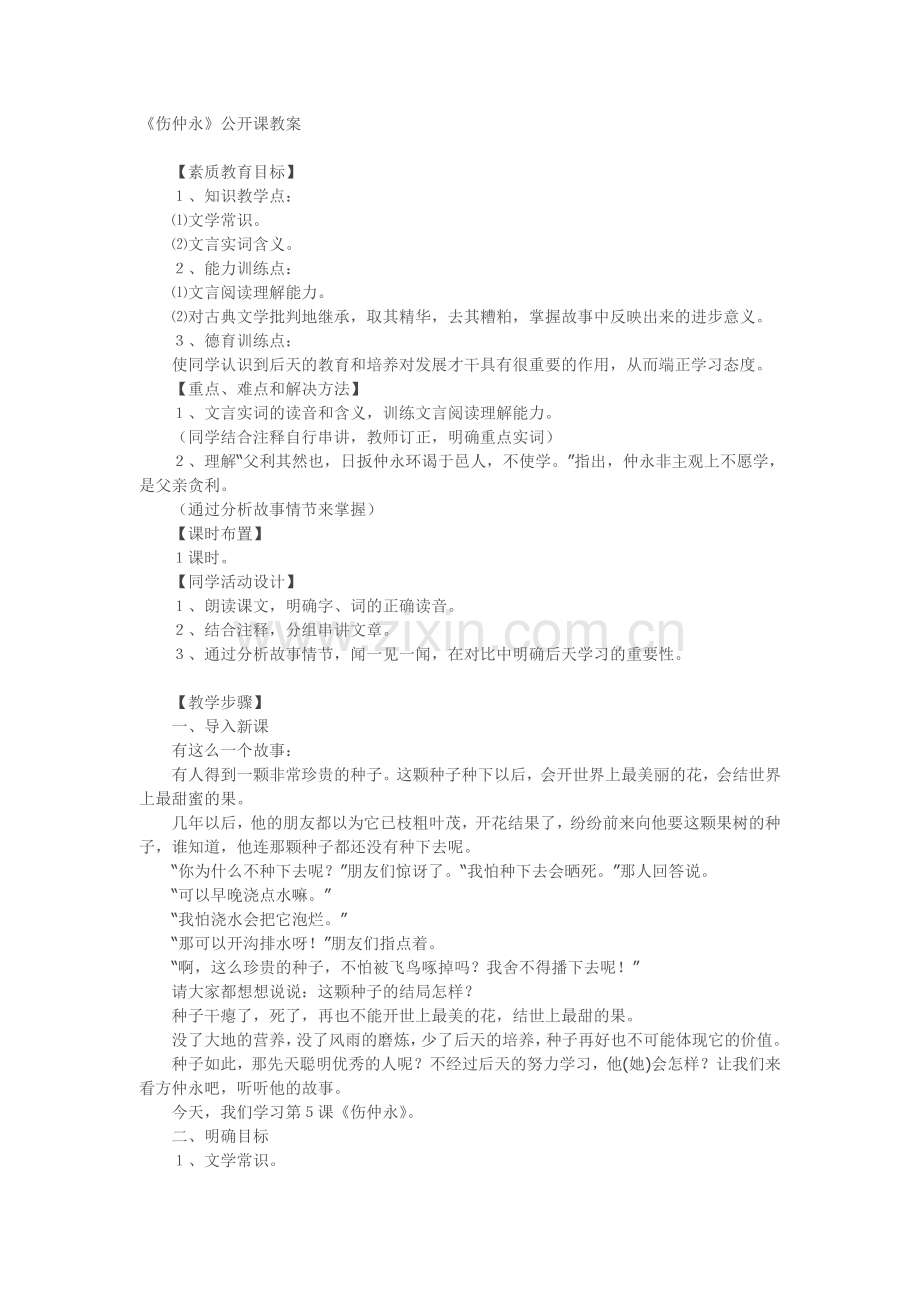 1、以“从方仲永的悲剧所想到的”为题,在课堂上即席发言,谈感受: