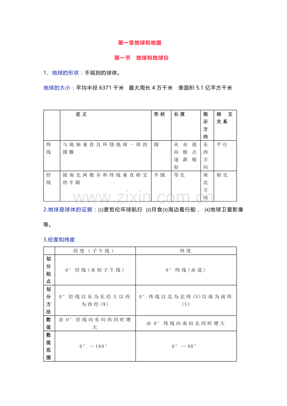 4、高、中、低纬的划分:0°---30°为低纬,30°-60°为中纬,60°-90°为高纬。