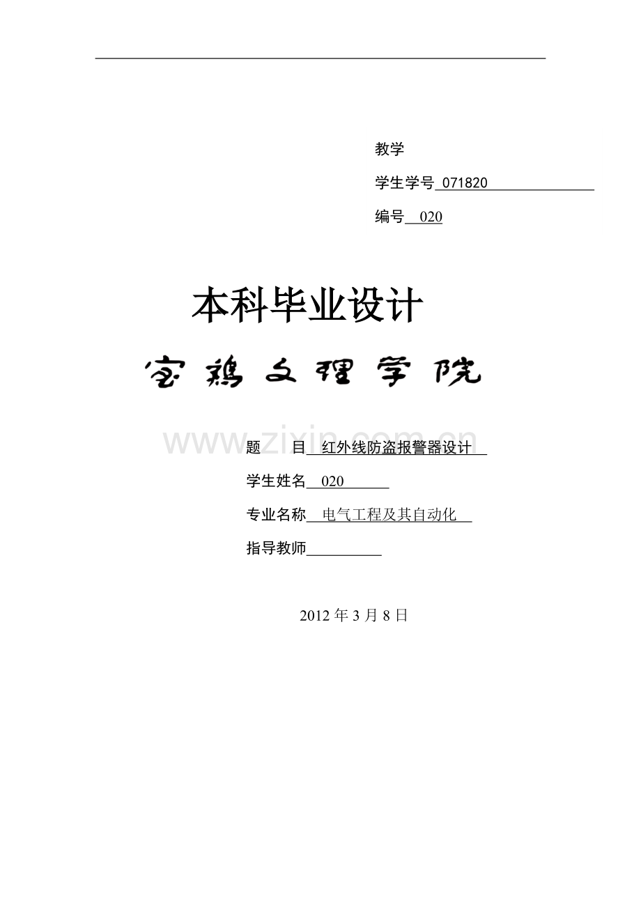 题 目 红外线防盗报警器设计