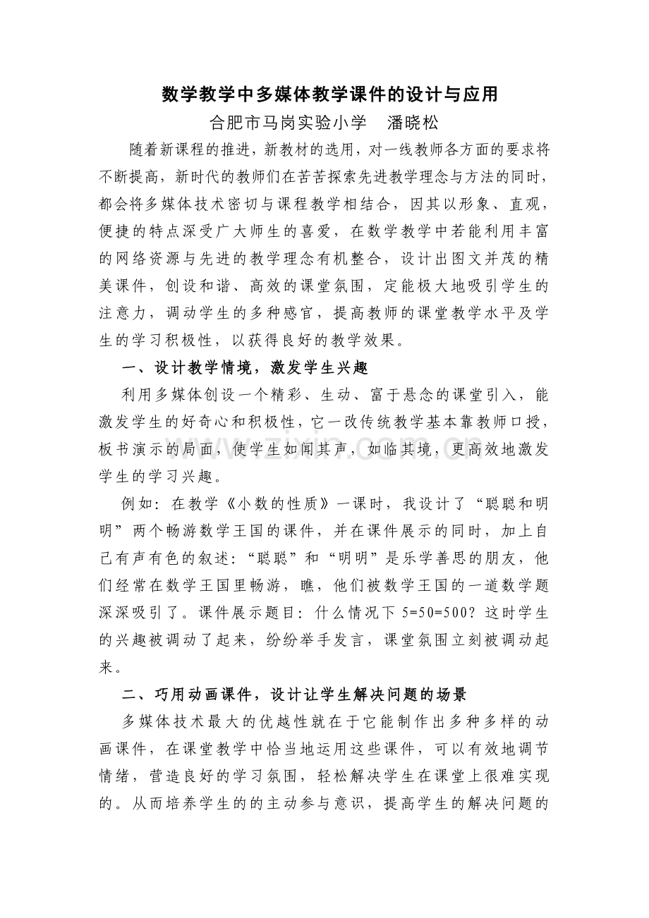 例如:在教学《小数的性质》一课时,我设计了“聪聪和明明”两个畅游数学王国的课件,并在课件展示的同时,加上自己有声有色的叙述:“聪聪”和“明明”是乐学善思的朋友,他们经常在数学王国里畅游,瞧,他们被数学王国的一道数学题深深吸引了。课件展示题目:什么情况下5=50=500?这时学生的兴趣被调动了起来,纷纷举手发言,课堂氛围立刻被调动起来。